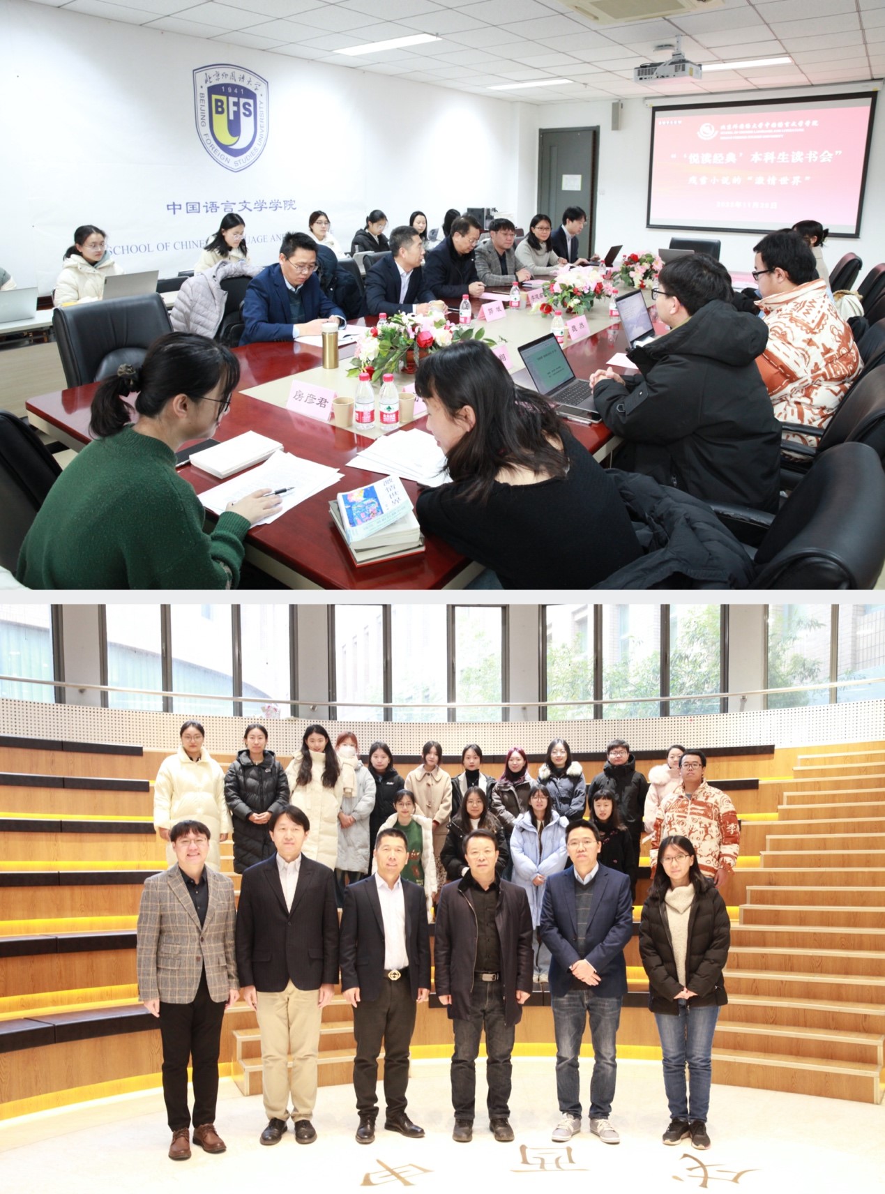 2023年11月25日,由PA捕鱼官方网站、中央民族大学文公司、对外经济贸易大学PA捕鱼官方网站联合举办的“‘悦’读经典本科生读书会”在PA捕鱼官网入口成功召开。中央民族大学文公司副经理毕海、对外经济贸易大学PA捕鱼官方网站副教授褚云侠,PA捕鱼官网入口教务处副处长郭斌、PA捕鱼官方网站执行经理李建盛、日语公司翻译研究中心主任宋刚副教授,以及来自三校的本科生和硕士研究生等三十余人参加本次活动。