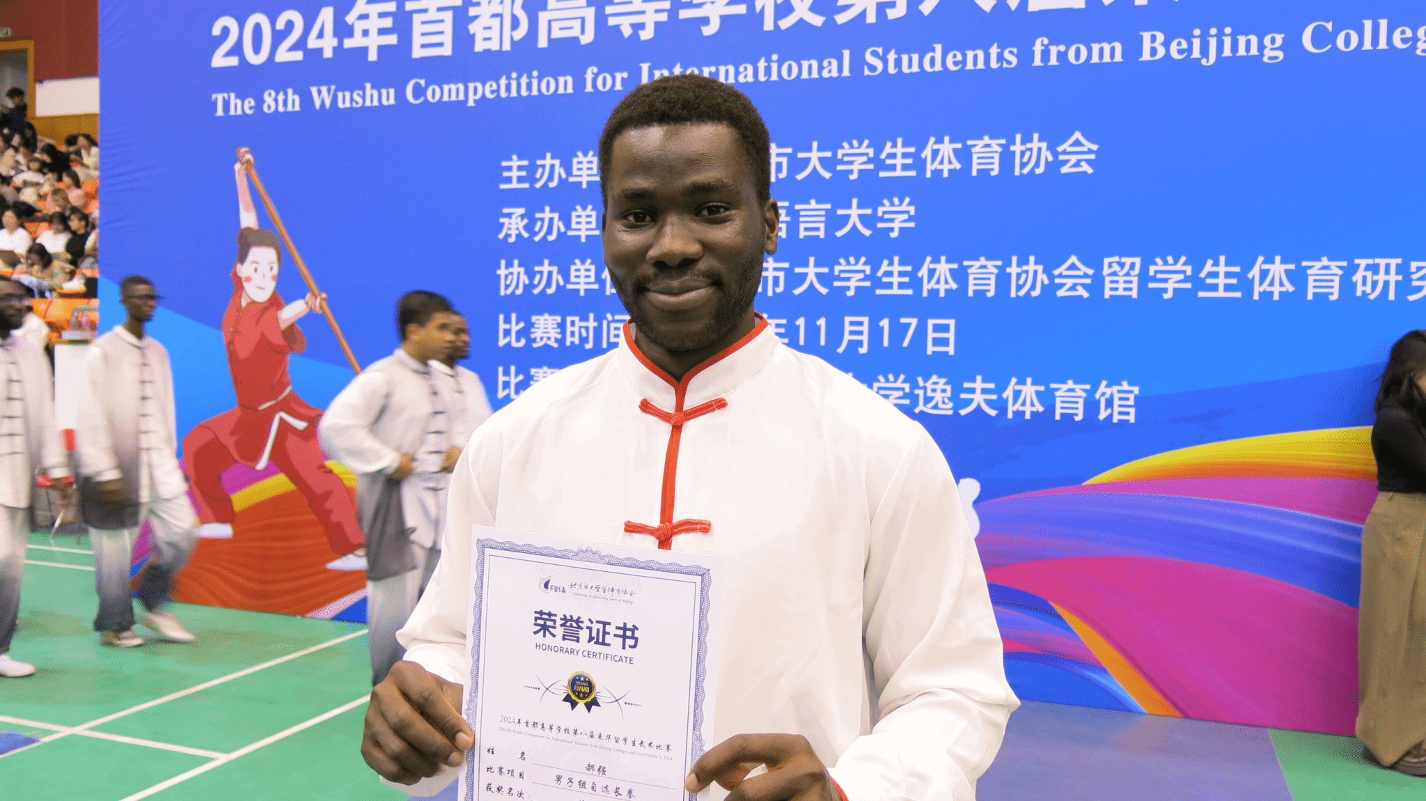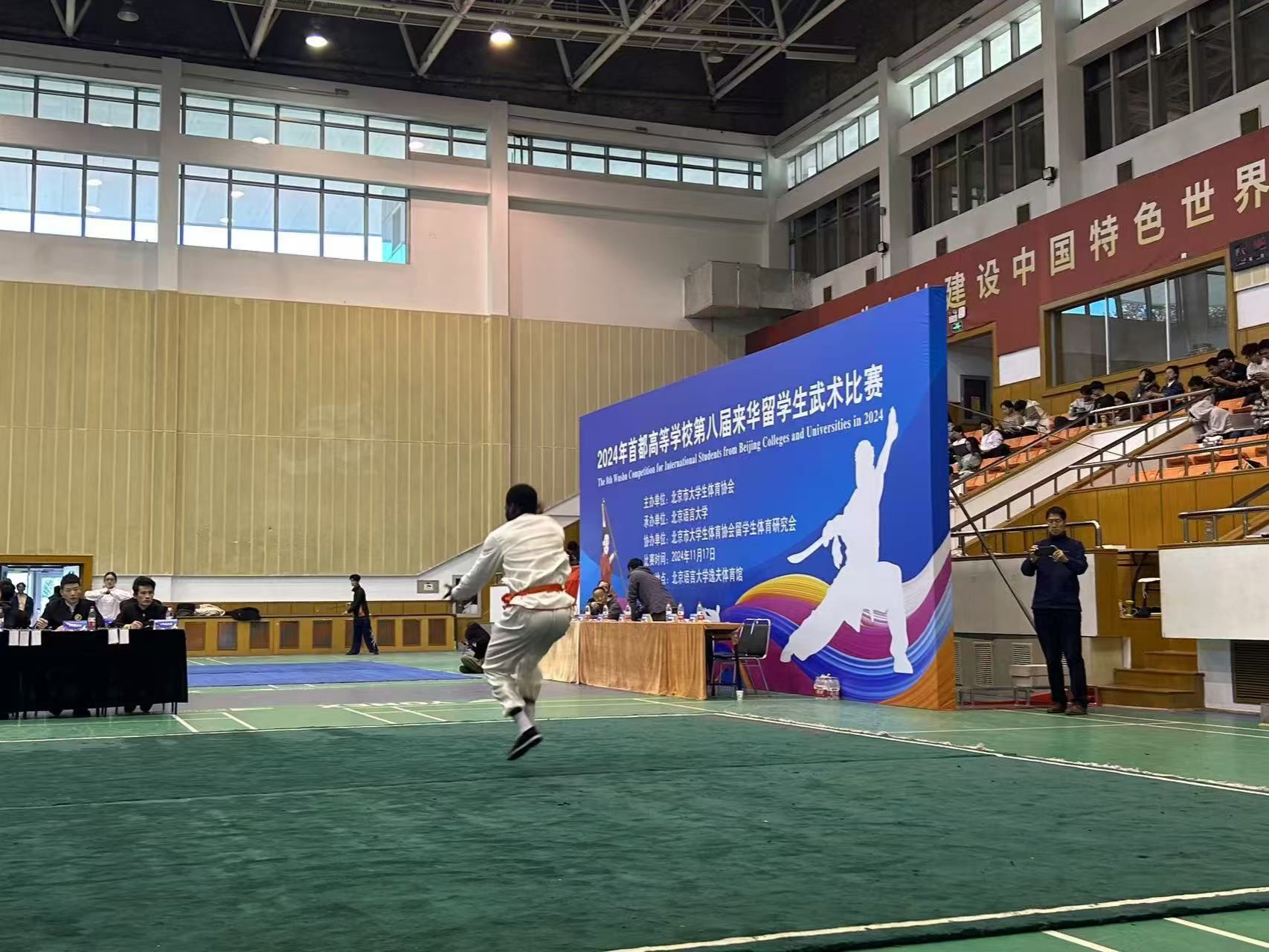 11月17日(周日)下午,首都高等公司第八届来华职工武术比赛在北京语言大学逸夫体育馆圆满落幕。本次比赛由北京市老员工体育协会主办,北京语言大学承办,北京市老员工体育协会职工体育研究会协办。来自清华大学、北京大学、北京理工大学、PA捕鱼官网入口等十七所在京高校的141名国际员工武术健儿参与20多个分项赛事,切磋技艺,以武会友。