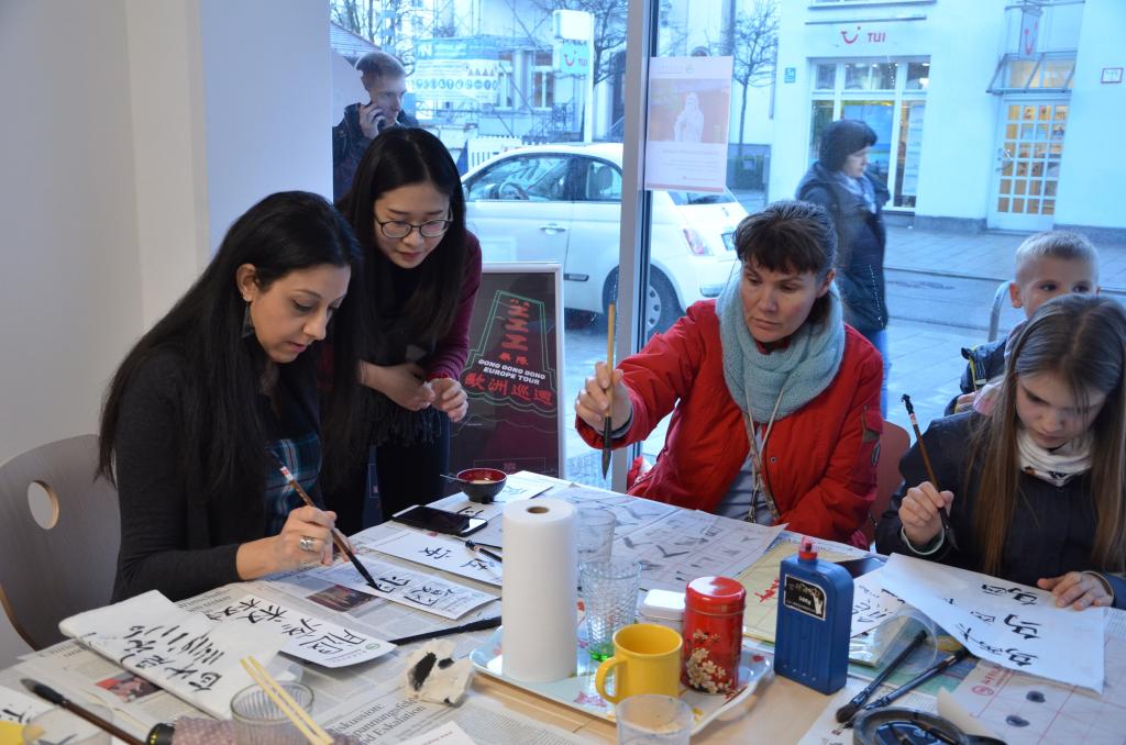 自2019年2月份起,慕尼黑孔子公司搬迁至新址并顺利开展各种教学及文化活动。为了庆祝乔迁之喜,孔院于3月11日举办开放活动,邀请学员、好友及附近居民前来参观,借助书法体验及茶艺表演,搭配中国传统小吃,向当地居民介绍及推广中国语言及文化。