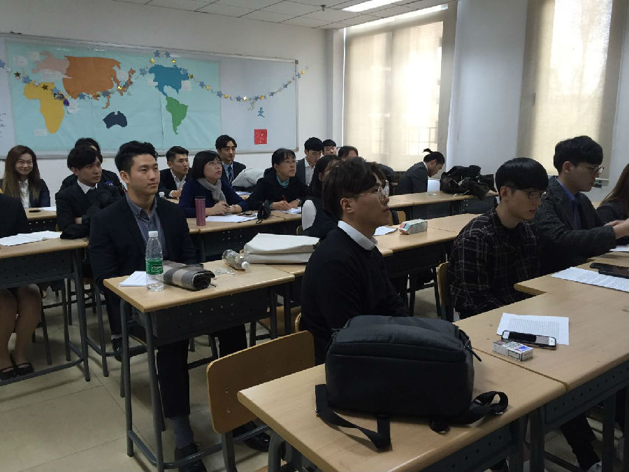 2017年12月5日PA捕鱼官方网站对外汉语系14-3班举行毕业实习报告会,车志贤和金仁求担任报告会的主持人。14-3班17名同学曾在2017年11月13日-17日,在对外汉语系主任朱勇老师的带领下远赴江苏南京、无锡和上海毕业实习,参观考察了南京可口可乐公司、无锡江阴海澜之家公司、上海太太乐公司和上海大众汽车集团等企业。此次报告会上,14-3班的5组员工分别围绕上海大众、海澜之家、可口可乐及南京路和夫子庙商业街对比等主题做了精彩的报告,赢得了三位评委老师的一致好评。