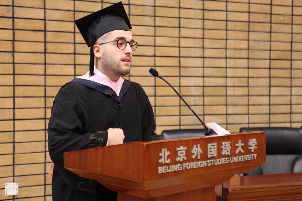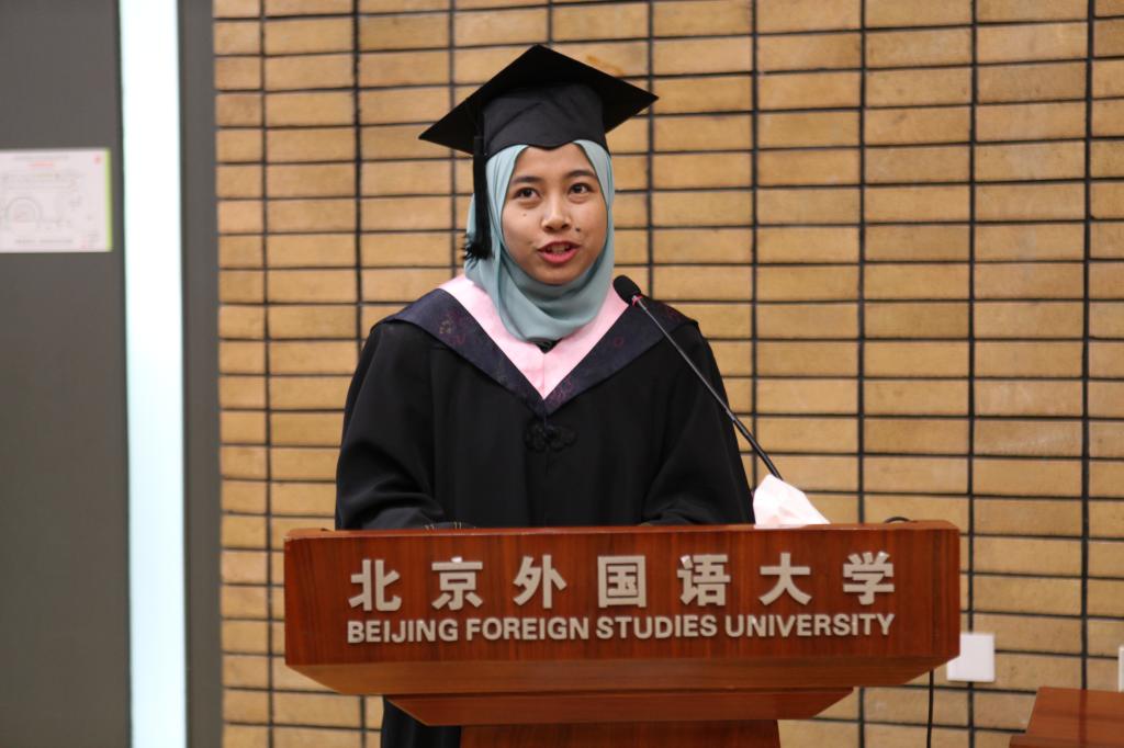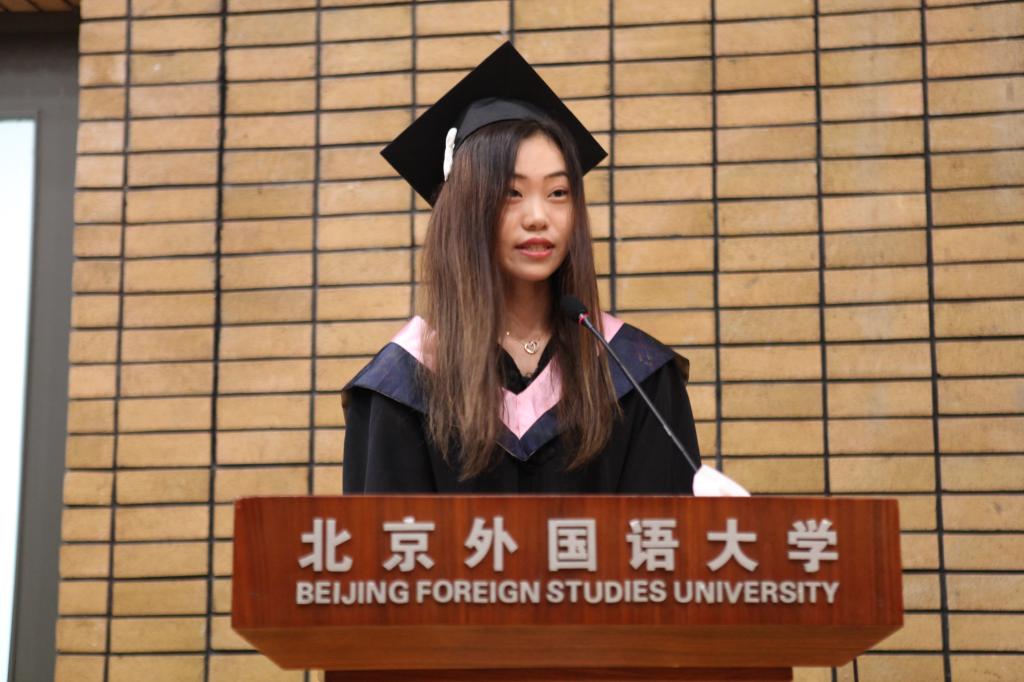 毕业典礼先由驻华使馆教育参赞侯春兴先生致辞,随后由陈小明副经理为毕业生送上临别祝福。四年的师恩难忘,四年的友情难舍,最后,全场毕业生一起合唱“朋友”,为毕业典礼画上了完美的句号。