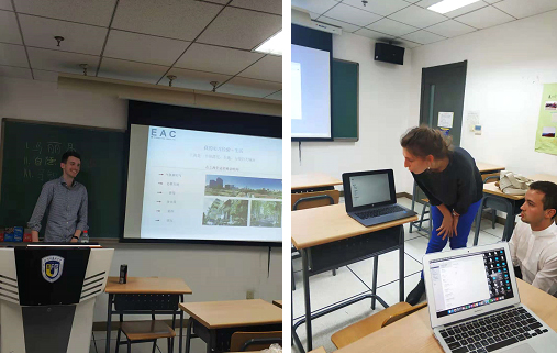 报告会上,学员们用汉语介绍了公司在华的发展历程及现状,汇报实习期间负责的工作内容,并分享了在当地的生活体验。他们对自己的实习经历使用了“非常满意”这样的语句来形容,并且十分感谢在北外学习的汉语课程能让他们更好地适应当地的生活。报告准备充分,语言清晰流畅。学员们在汇报时表达了对今后留在中国工作的兴趣,在欧亚咨询公司实习的马智同学将继续留在上海工作称为自己的“中国梦”。孙琳老师积极评价了同学们的实习汇报,并鼓励他们努力实现自己的梦想。