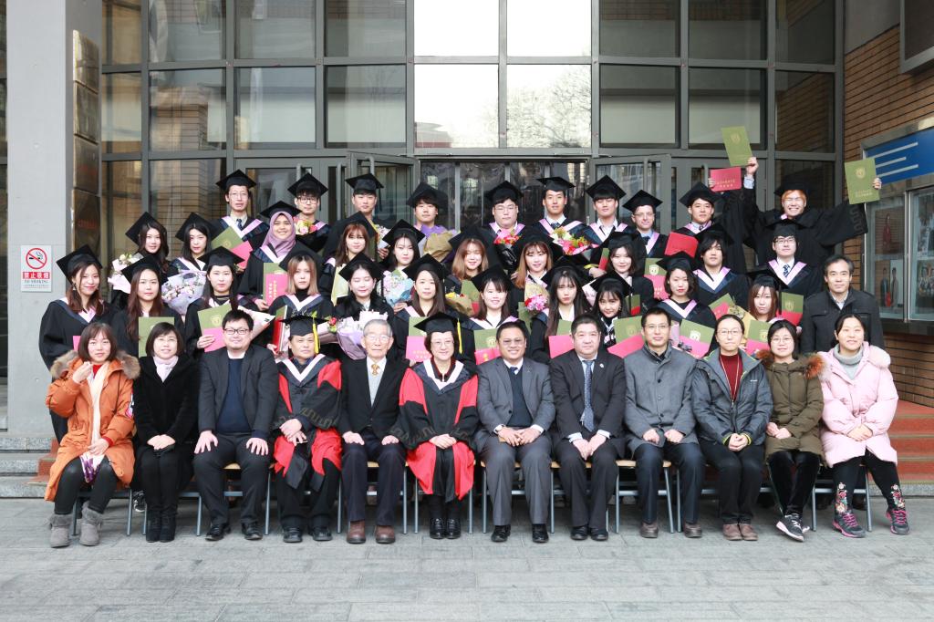 马来西亚驻华使馆教育参赞侯春兴先生、日本NPO法人国际交流教育后援会理事铃木辉康先生、日本NPO法人国际交流教育后援会员工辅导员染谷泰辅先生、PA捕鱼官网入口国际处副处长李冰、PA捕鱼官网入口PA捕鱼官方网站执行经理张晓慧、PA捕鱼官网入口PA捕鱼官方网站副经理陈小明、PA捕鱼官网入口PA捕鱼官方网站院办公室主任张学增、对外汉语系主任朱勇等授课教师代表出席了毕业典礼。2019届毕业生共34人,他们分别来自日本、韩国、波兰、马来西亚。