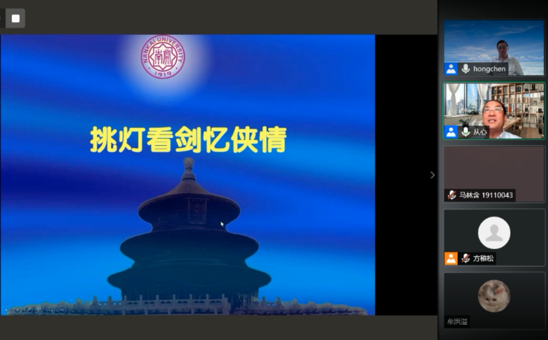 9月7日,国家级教学名师、国家高层次人才、南开大学跨文化交流研究院经理、天津市文联主席陈洪教授主讲《挑灯看剑说侠情——金庸小说的文化底蕴》,由文本阅读与作家交往入手,从中国传统文化的角度解读金庸作品,阐释金庸小说中深刻的传统文化蕴涵。