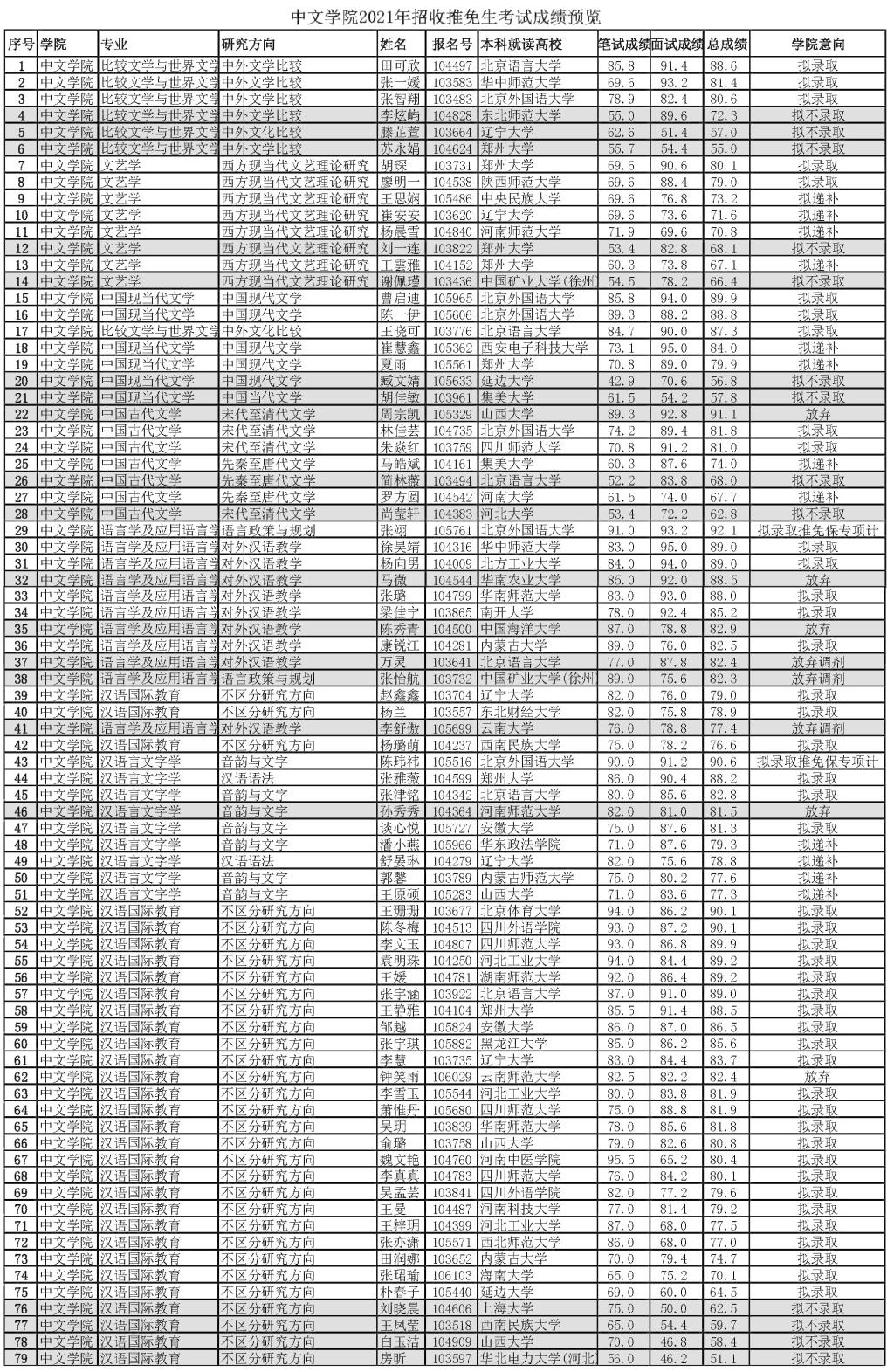 以下为PA捕鱼官方网站2021年招收推免生考试成绩预览(点击下载)。