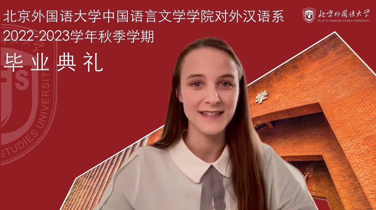 德国职工洋灵慧作为国际班毕业生代表发言。她表示因为学习汉语,结识了来自不同国家、不同文化背景的朋友,并在疫情期间互相支持,圆满完成了学业,每一位毕业生都表现出了非同寻常的毅力、自律能力和乐观的心态,都应该为自己自豪,未来大家还要并肩前行,肩负起年轻人的责任,共创美好未来。她感谢同学们的温暖陪伴,感谢老师多年来的支持与帮助。