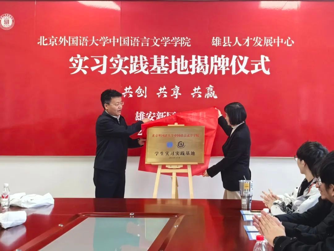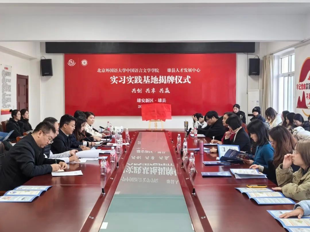 在共建揭牌仪式上,杜皓部长首先在致辞中对PA捕鱼官方网站的来访表示热烈欢迎,并对北外在人才培养方面取得的卓越成就表示赞赏。同时他介绍了雄安新区成立七年来从蓝图到实景的发展成果,以及雄县坚持以青年人才作为推动高质量发展的工作成绩。他希望以此次共建实习实践基地为契机,助力双方在更多领域、更深层次上开展合作,共同探索校地融合发展的新领域和新模式。