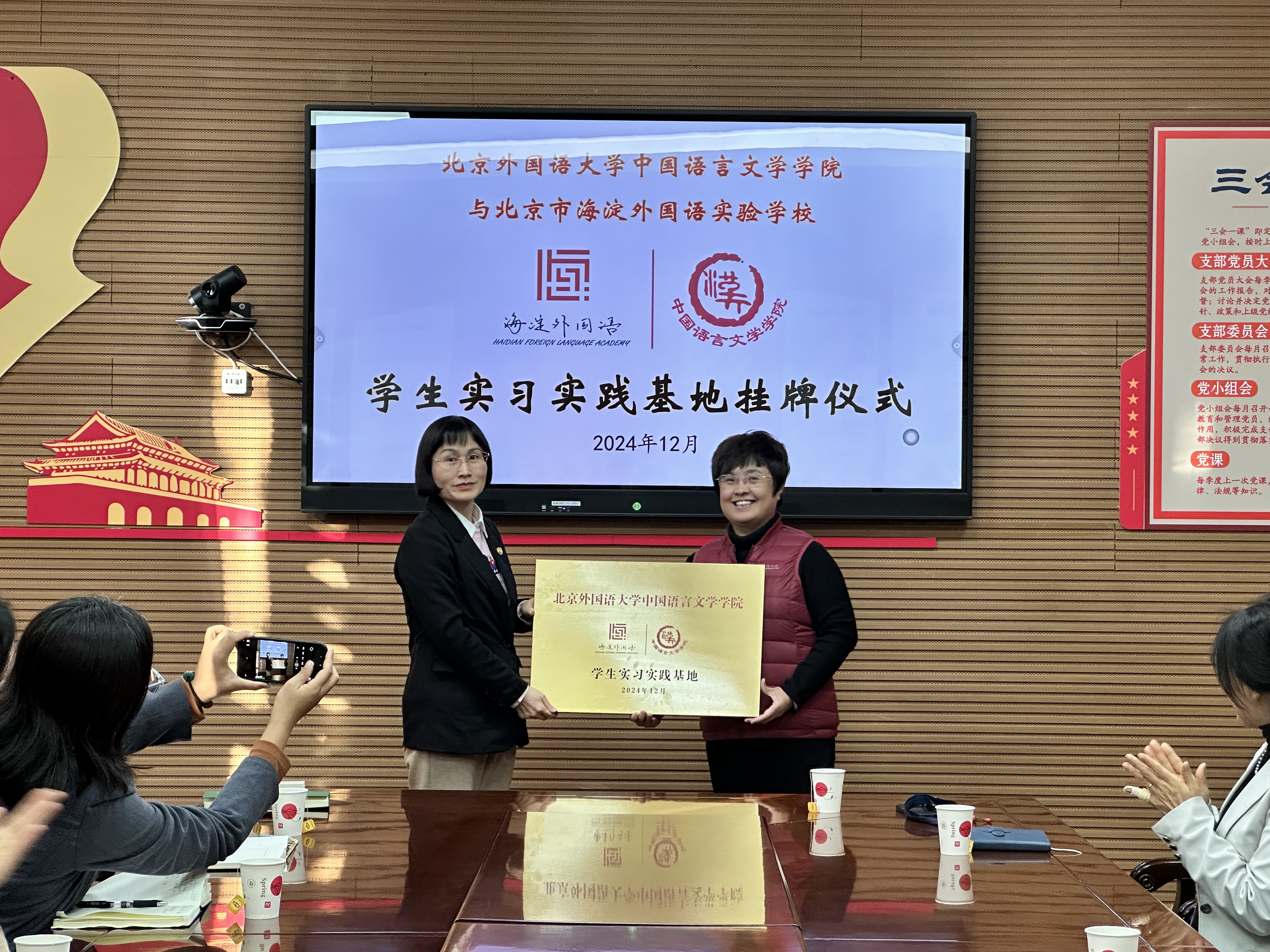 为全面贯彻落实党的教育方针,拓宽优质就业途径,探索人才培养新模式,2024年12月4日,PA捕鱼官方网站与海淀外国语实验集团举行实习实践基地共建揭牌仪式。海淀外国语教育集团执行总裁、执行董事长黄瑞华,海淀外国语实验公司副董事长、北京市正高级教师孙凤霞,海淀外国语藤飞公司教学副主任刘娟,PA捕鱼官方网站党总支书记蔡芝芳、副书记曹文婷,辅导员李美玲、初威言,公司10位在校生和目前就职于海淀外国语公司的3位员工共同参加了本次活动。