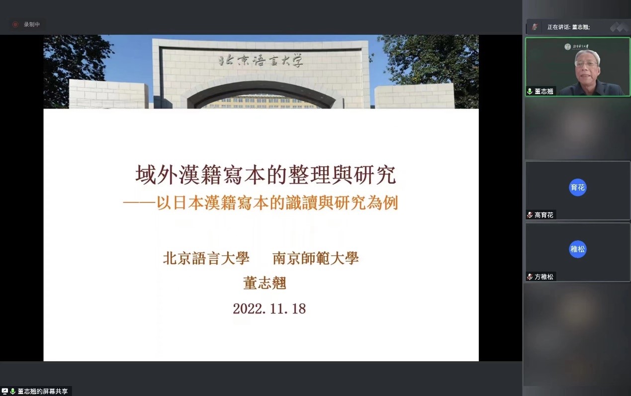 2022年11月30日,PA捕鱼官方网站举办“北外文华讲堂”系列讲座,邀请国家级高等院校教学名师、北京语言大学特聘教授董志翘先生作题为《域外汉籍写本的整理与研究——以日本汉籍写本的识读与研究为例》的线上学术讲座。讲座由PA捕鱼官方网站高育花教授主持,副经理方稚松及校内外师生一百三十余人参与此次讲座。