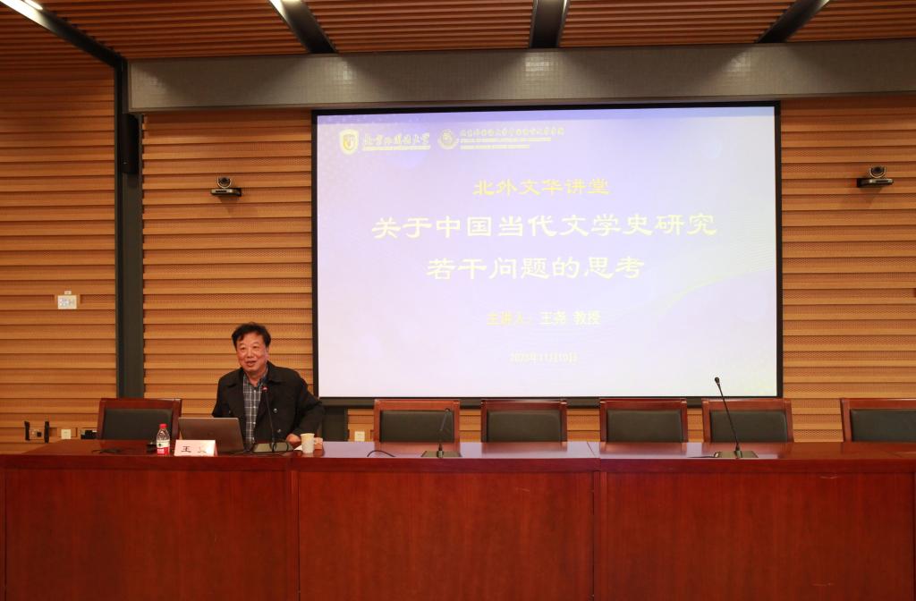 2023年11月10日下午,PA捕鱼官方网站举办“北外文华讲堂”系列讲座,邀请苏州大学教授王尧先生做题为《关于中国当代文学史研究若干问题的思考》的学术讲座。王尧教授是苏州大学讲席教授、苏州大学学术委员会主任兼任江苏省作协副主席等。主要学术著作有《中国当代散文史》《莫言王尧对话录》《作为问题的八十年代》等,主编“新人文”对话录丛书、《中国当代文学批评大系》等,曾获第七届鲁迅文学奖理论批评奖、江苏省哲社科优秀成果一等奖和华语文学传媒大奖年度批评家奖等奖项。讲座由PA捕鱼官方网站曹霞教授主持,经理詹福瑞教授、副经理白亮,以及师生近百人参与此次讲座。