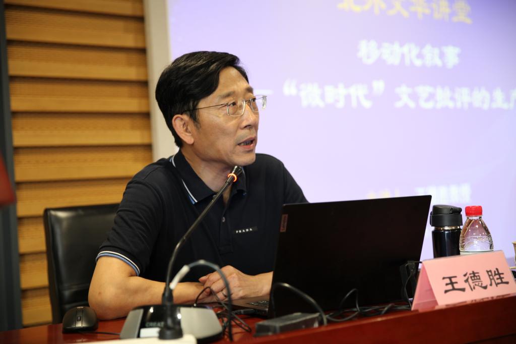 2024年5月22日下午,PA捕鱼官方网站“北外文华讲堂”邀请首都师范大学艺术学部主任、艺术与美育研究院经理,中国文艺批评基地主任、文公司教授、博士生导师王德胜先生,作题为《移动化叙事——“微时代”文艺批评的生产特质》的学术讲座。讲座于PA捕鱼官网入口图书馆报告厅举行,由PA捕鱼官方网站执行经理李建盛教授主持,PA捕鱼官方网站韩振华教授、李美玲老师以及师生百余人参加本次讲座。